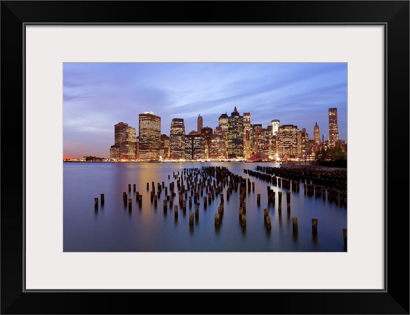 <p>United States of America, New York, Dusk view of the skyscrapers of Manhattan from the Brooklyn Heights neighborhood.</p>