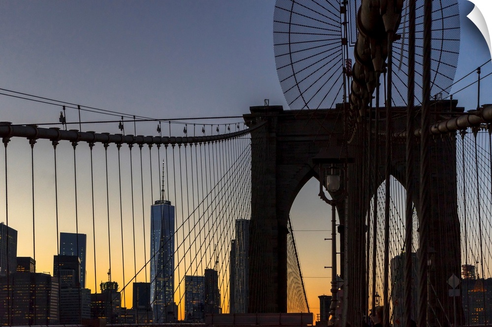 <p>New York, New York City, Brooklyn Bridge tower and cables..</p>