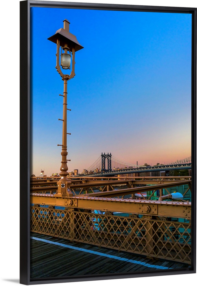 <p>New York, New York City, Brooklyn, view of Manhattan Bridge from Brooklyn Bridge promenade..</p>