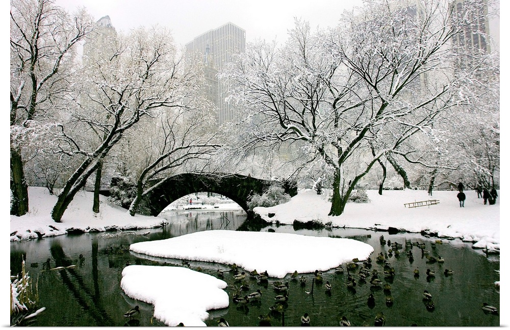 <p>New York, New York City, Winter in Central Park, Pond and Gapstow Bridge.</p>
