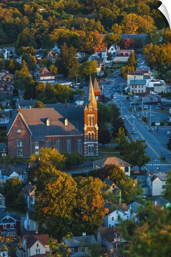 <p>New York, Port Jervis aerial view with fall colors</p>