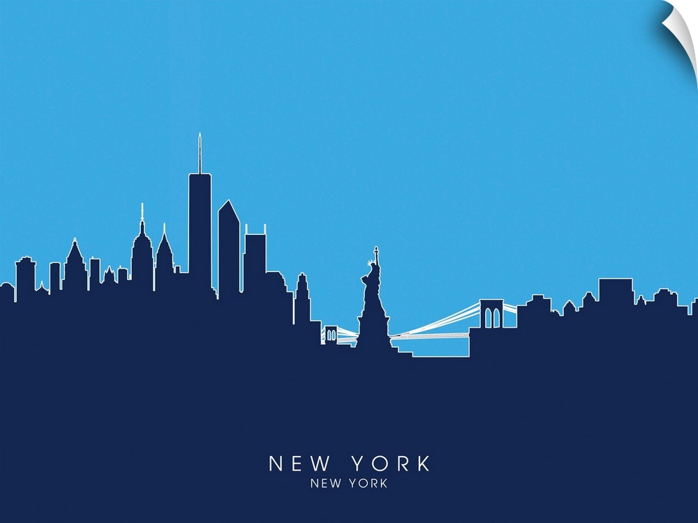 <p>Contemporary artwork of the New York City skyline silhouetted in blue.</p>