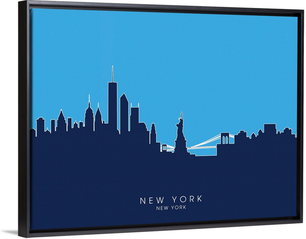 <p>Contemporary artwork of the New York City skyline silhouetted in blue.</p>
