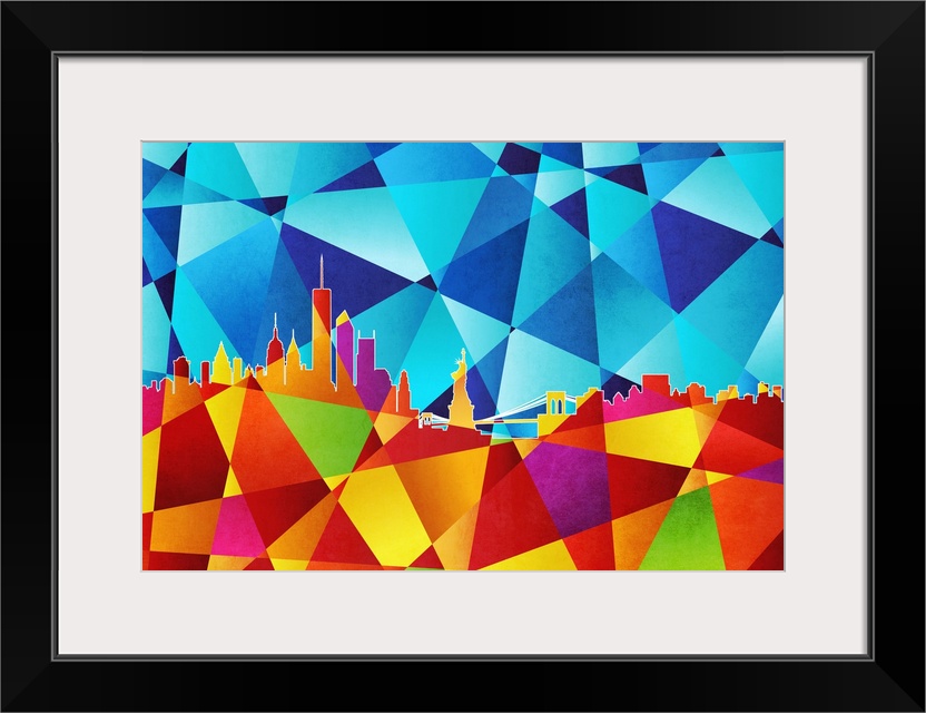 <p>Contemporary artwork of a geometric and prismatic skyline of New York City.</p>