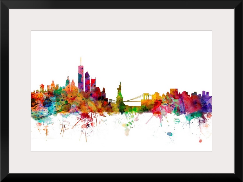 <p>Watercolor artwork of the New York City skyline against a white background.</p>
