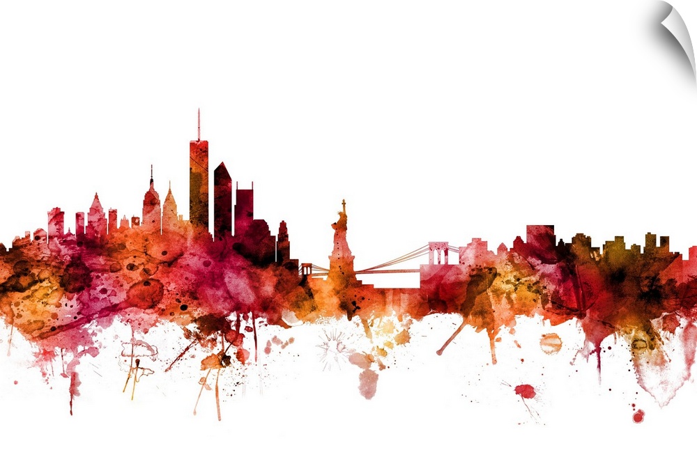 <p>Watercolor art print of the skyline of the City of New York, New York, United States</p>