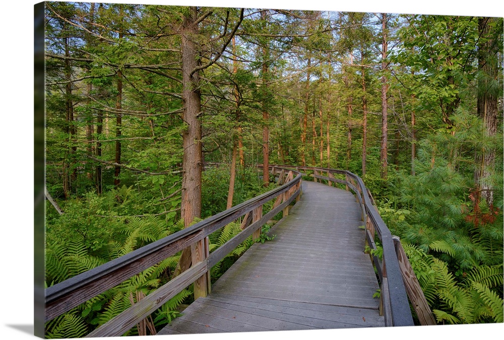 New York State, The Boardwalk That Winds Through The Wetlands Of Labrador Pond