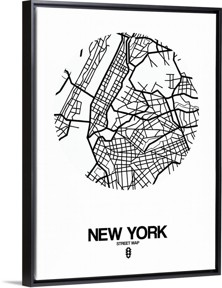 <p>Minimalist art map of the city streets of New York City in white and black.</p>