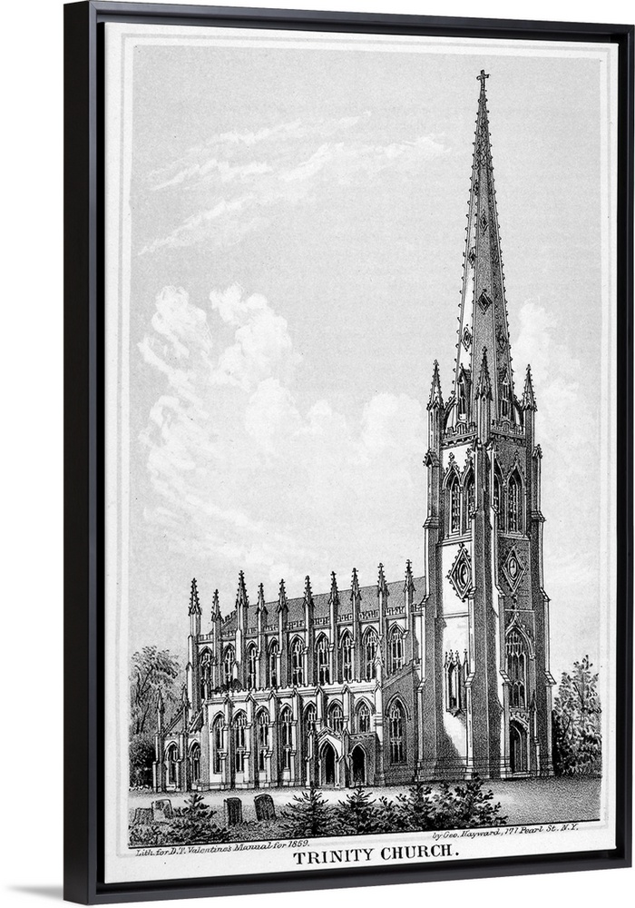 <p>Trinity Church, located at Broadway and Wall Street, New York. Lithograph, 1859.</p>