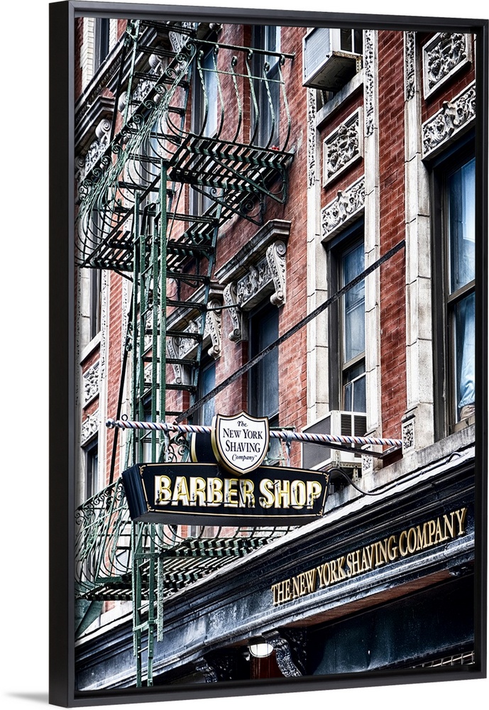 <p>Traditional Barber Shop Sign on a Typical New York City Building, Manhattan, New York City.</p>