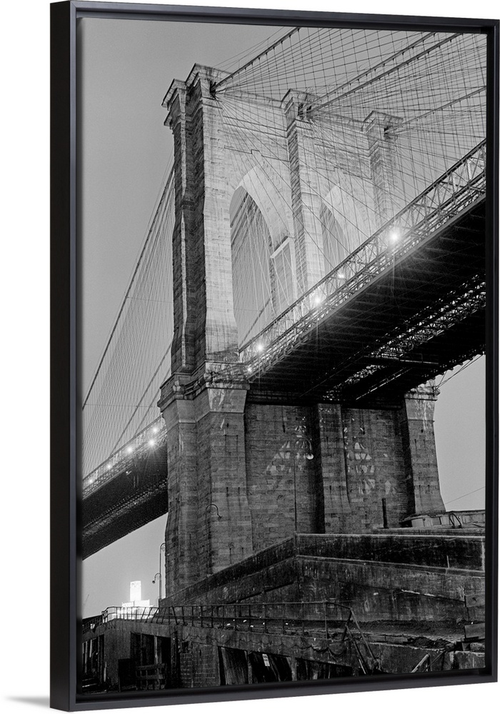 <p>New York City: (Undated) Brooklyn Bridge spans the East River. Photo shows the pillar on the Manhattan bridge.</p>