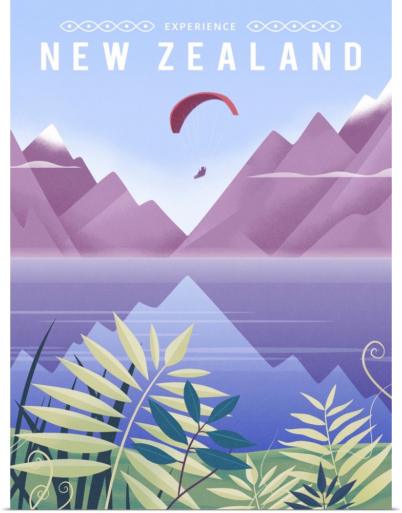 Art Decorative Art Graphic Art Landscapes Lake Mountains Purple Wall Art New Zealand Sports Travel Posters Contemporary Travel Posters Martin Wickstrom