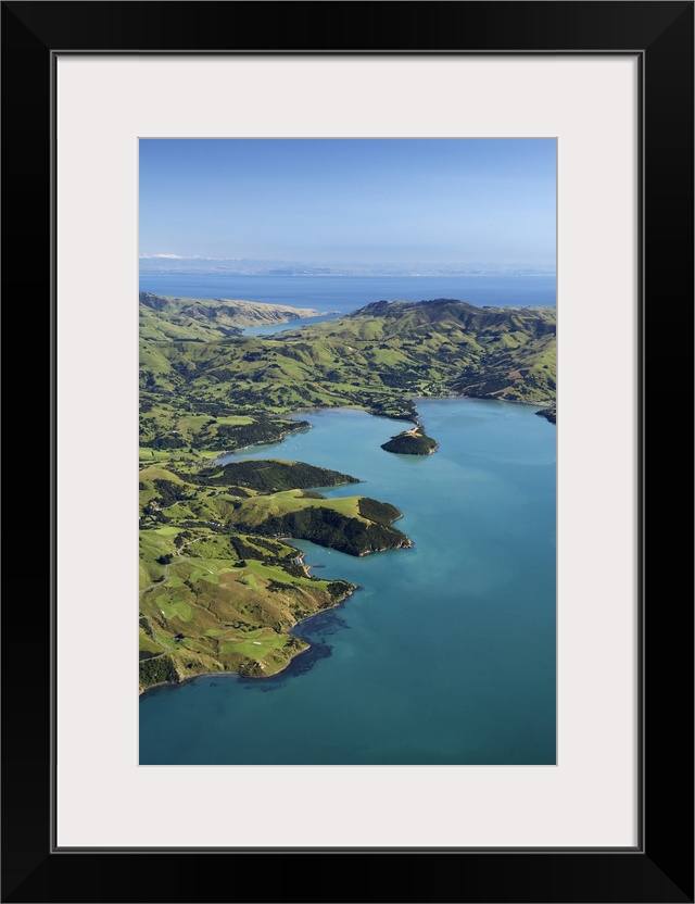 <p>Akaroa Harbour, Banks Peninsula, Canterbury, South Island, New Zealand- aerial</p>