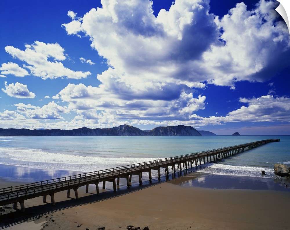 <p>New Zealand, North Island, East CoaSt. pier at Tologa Bay</p>