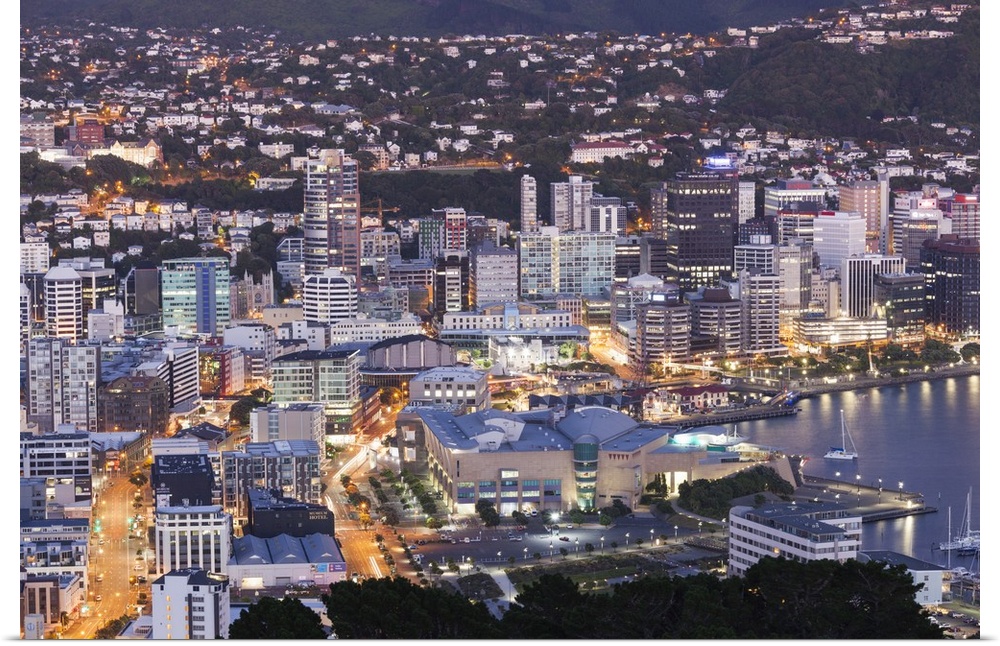 <p>New Zealand, North Island, Wellington, elevated city skyline from Mt. Victoria, dawn.</p>