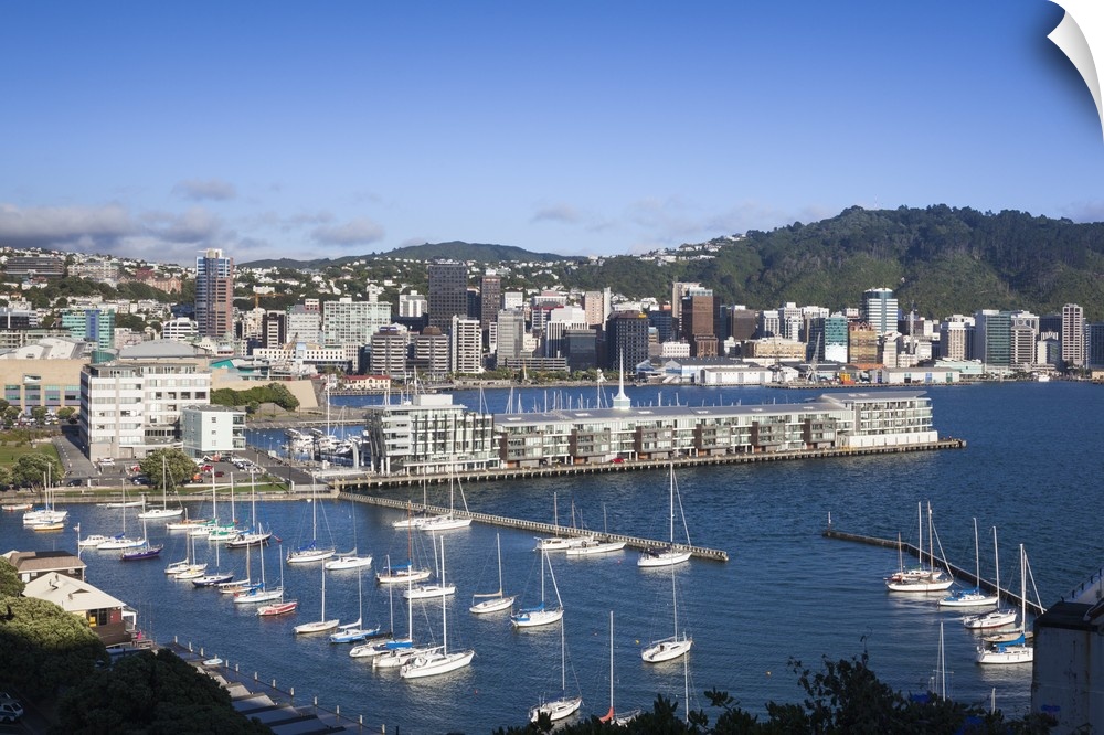 <p>New Zealand, North Island, Wellington, elevated city skyline from Mt. Victoria, dawn.</p>