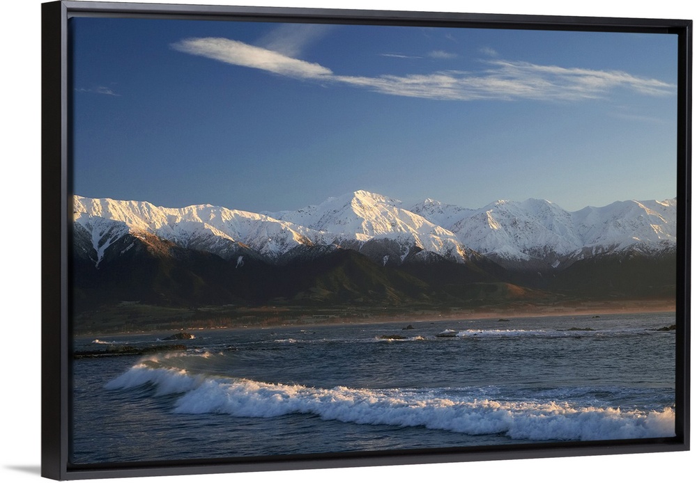 <p>New Zealand, South Island, Kaikoura, Waves and Early Light on Seaward Kaikoura Range</p>