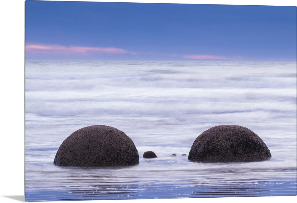 <p>New Zealand, South Island, Otago, Moeraki, Moeraki Boulders also known as Te Kaihinaki, dawn</p>