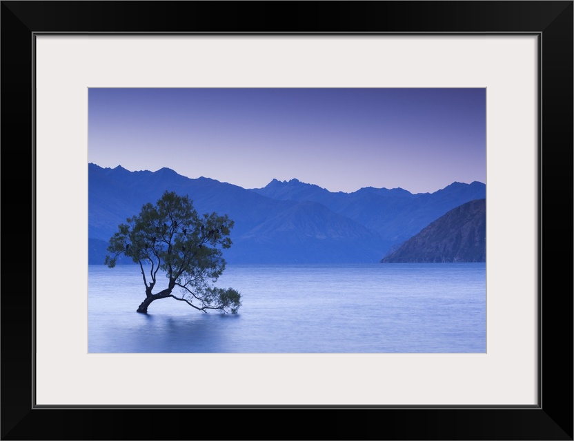 <p>New Zealand, South Island, Otago, Wanaka, Lake Wanaka, solitary tree, dusk.</p>