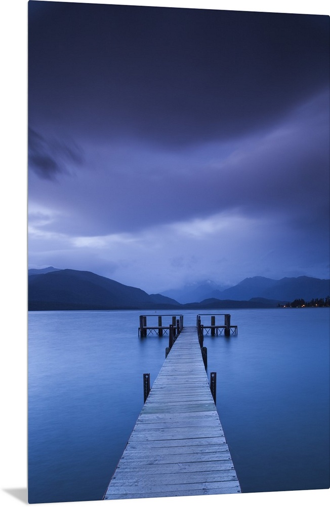 <p>New Zealand, South Island, Southland, Te Anau, Lake Te Anau pier, dusk.</p>