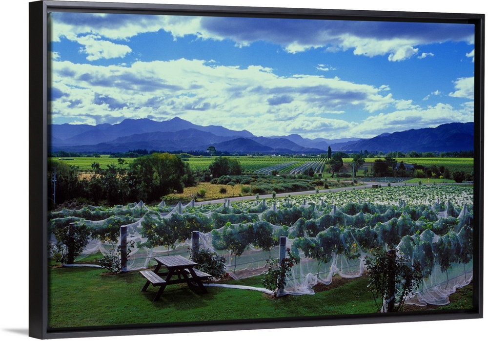 <p>Vigneti nel Marlborough nei pressi di Blenheim. Questa regione, che si trova all'estremit. nord-orientale dell'isola sud della Nuova Zelanda, . celebre per i suoi vini bianchi...Marlborough vineyards near Blenheim. The Marlborough region, at the north-eastern tip of New Zealand's South Island, is renowned for its white wines.</p>