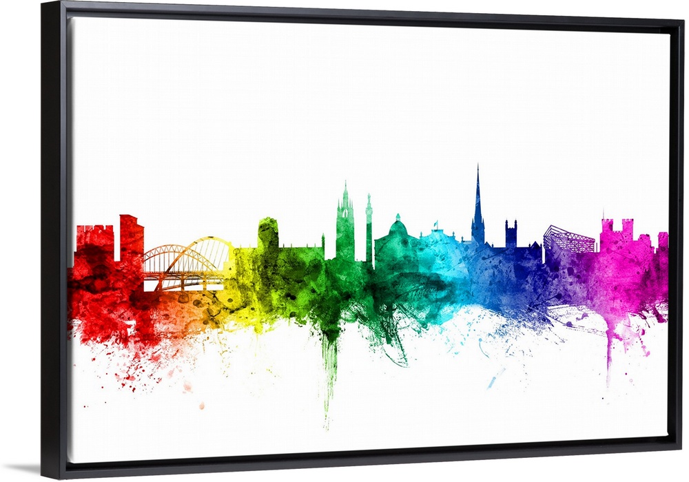 <p>Watercolor art print of the skyline of Newcastle, England, United Kingdom.</p>