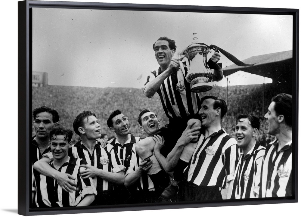 <p>30th April 1951: Newcastle United Football Club captain Joe Harvey is held aloft with the FA Cup trophy after their 2-0 victory over Blackpool in the FA Cup final at Wembley</p>