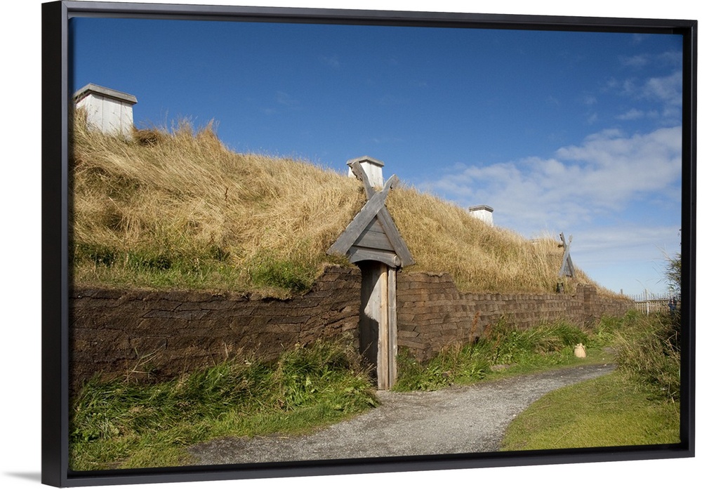 <p>Canada, Newfoundland and Labrador, L'Anse Aux Meadows. Archaeological site of the only confirmed Norse village in North America. UNESCO. Replica of Viking longhouse using sod construction.</p>