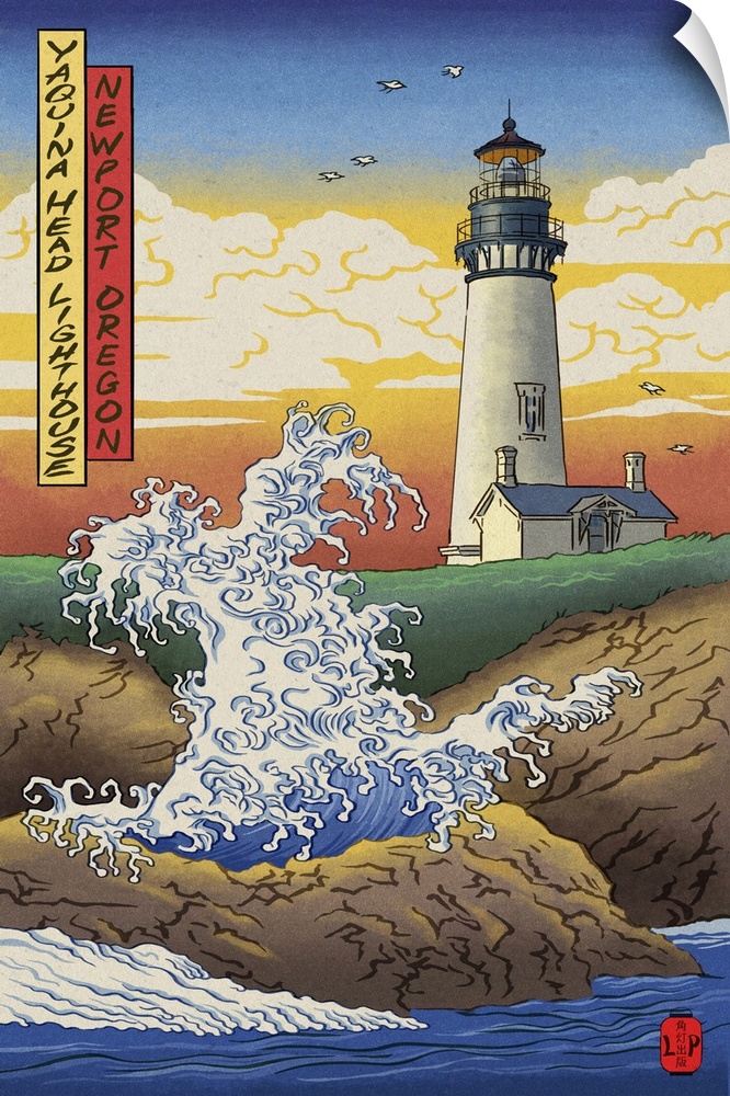 <p>Newport, Oregon, Yaquina Head Lighthouse Woodblock</p>