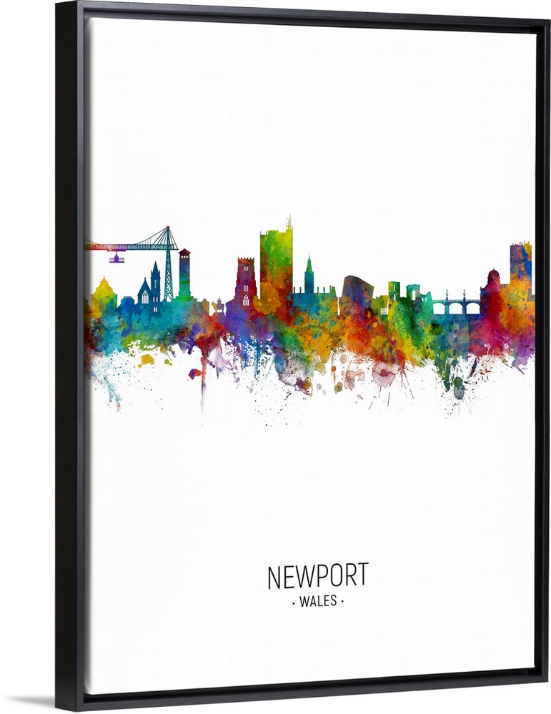 <p>Watercolor art print of the skyline of Newport, Wales, United Kingdom</p>