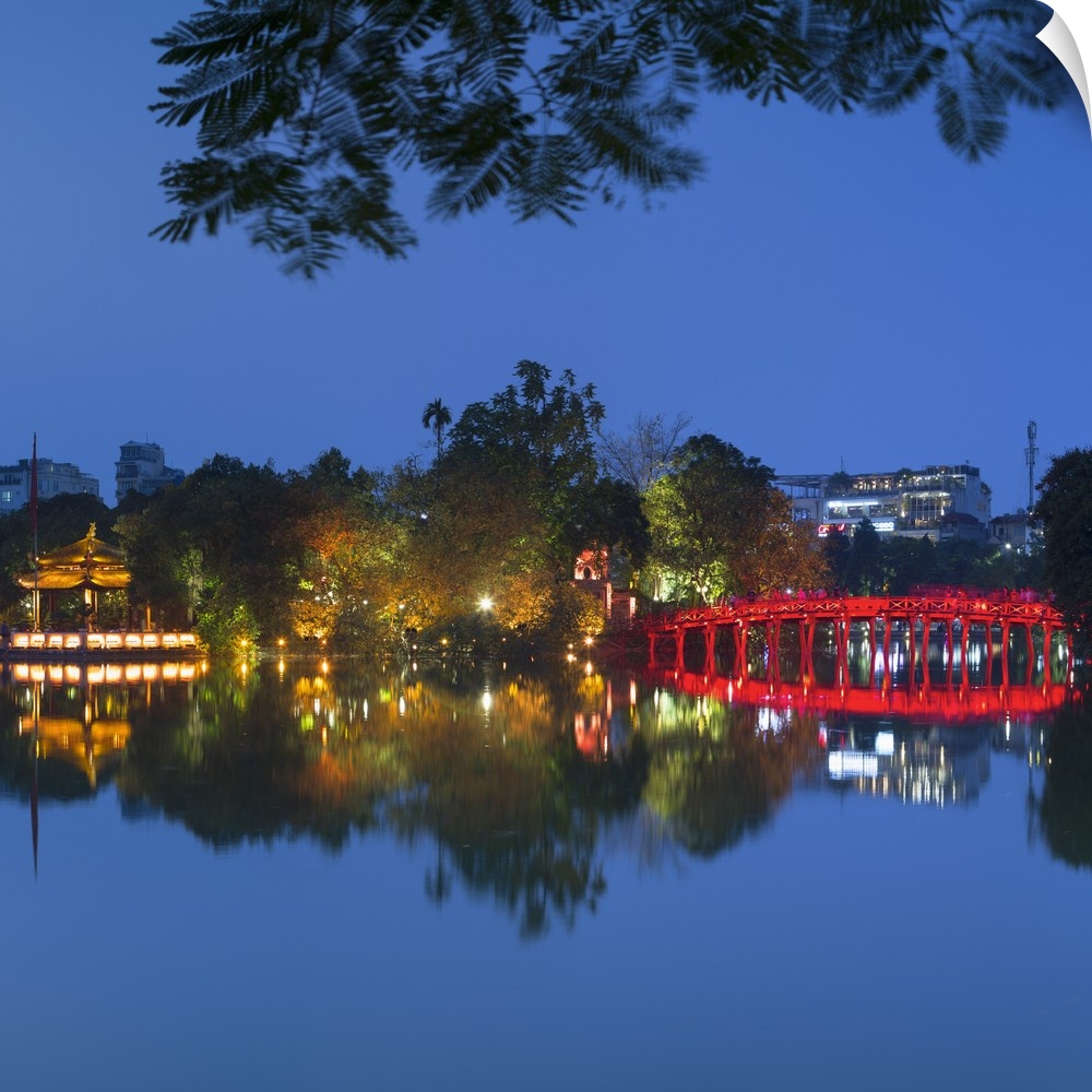 <p>Ngoc Son Temple on Hoan Kiem Lake at dusk, Hanoi, Vietnam.</p>