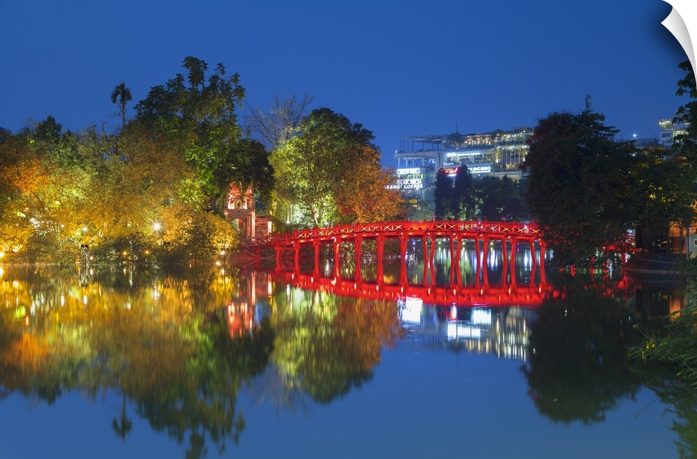 <p>Ngoc Son Temple on Hoan Kiem Lake at dusk, Hanoi, Vietnam.</p>