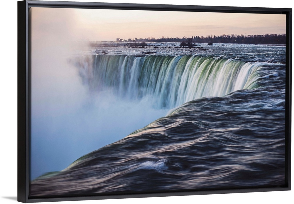 <p>Water cascades down at Horseshoe Falls while dramatic mist ascents to meet the rising sun.</p>