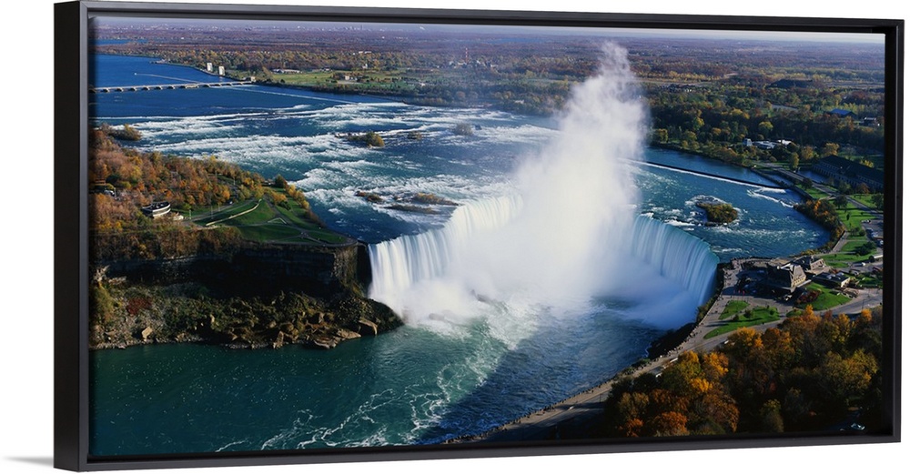 <p>Aerial photo of Niagara Falls lined by Canada on one side and New York on the other.</p>
