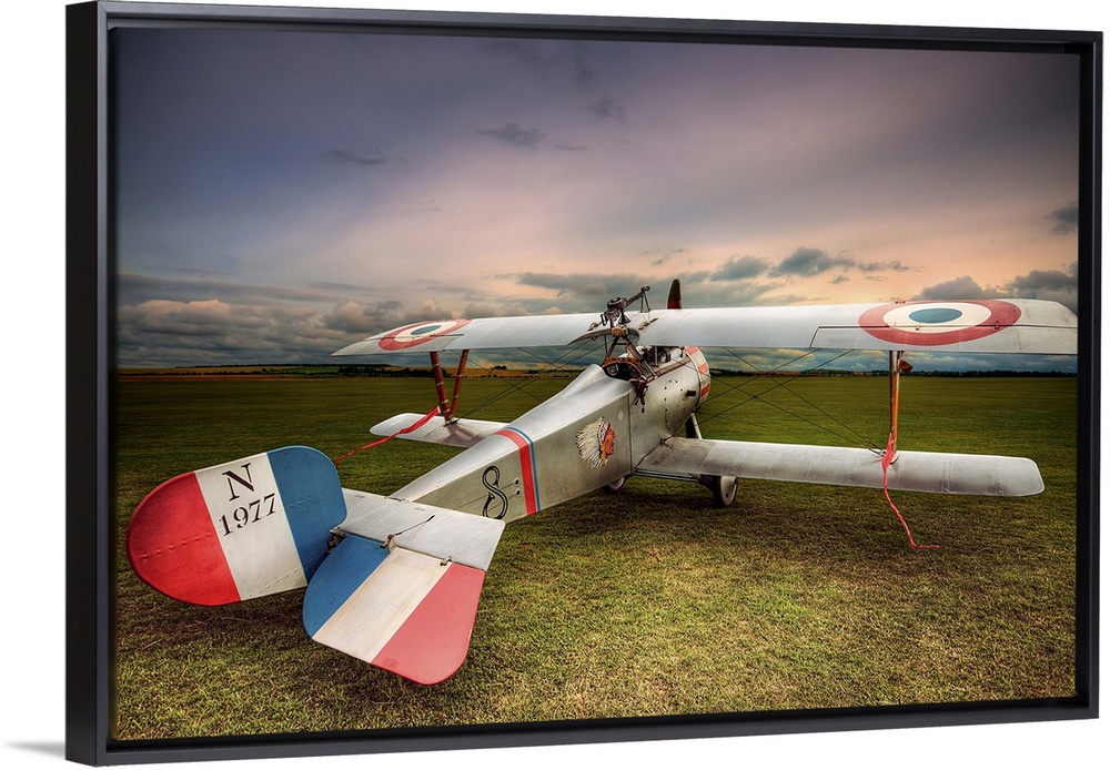 <p>A Nieuport 17 biplane lined up for an evening flight.</p>