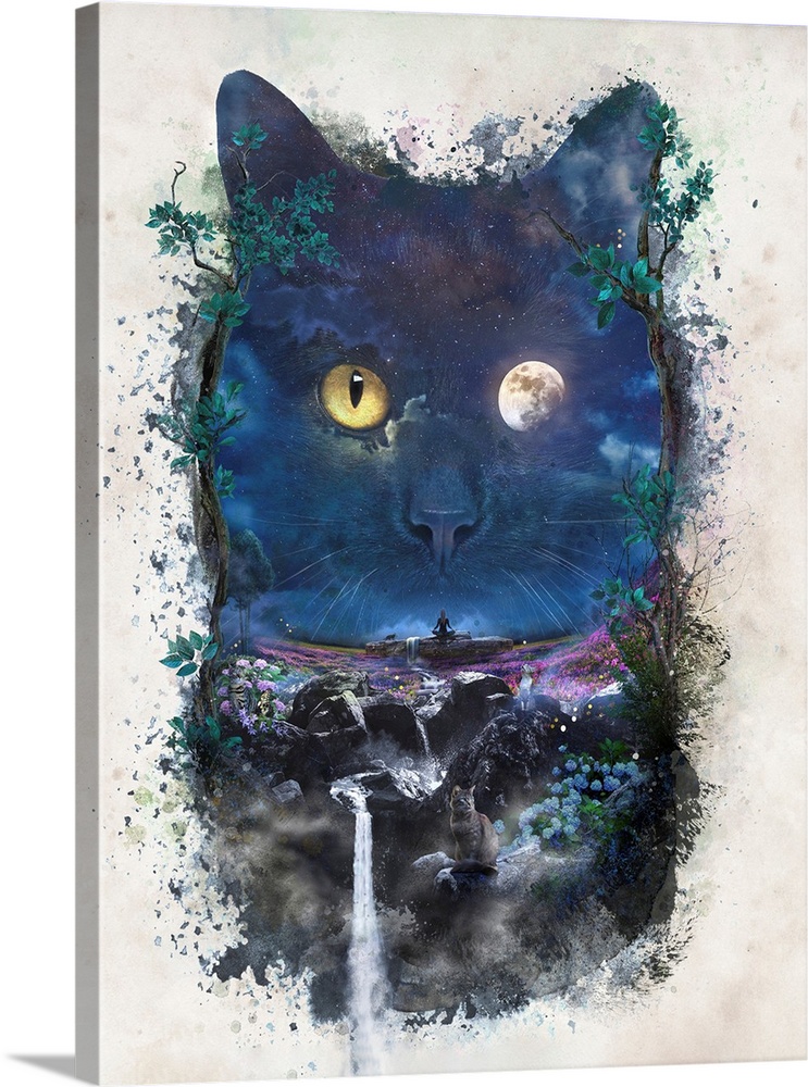 Art Blue Wall Art Contemporary Art Graphic Art Surrealism Wildlife Cat