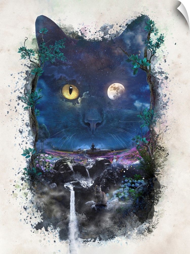 Art Blue Wall Art Contemporary Art Graphic Art Surrealism Wildlife Cat