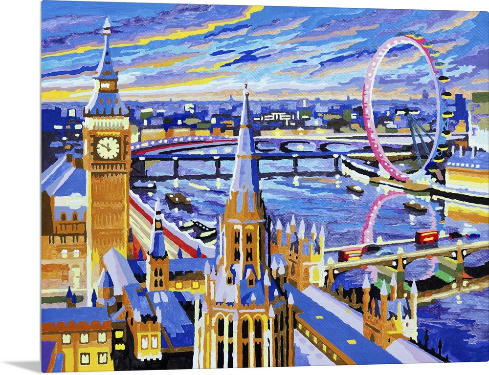 <p>Romantic summer night in London. Originally an Acrylic painting on canvas. The Thames river, big ben tower and so on.</p>