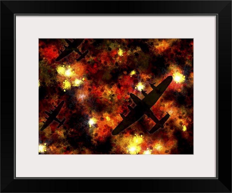 <p>Lancaster Bomber night raid art print. The Avro Lancaster Bomber was a World War II heavy bomber made for the British RAF. The lancaster bomber first saw active service in 1942 and specialised in night time raids. The most famous sorties where against the Rhur Valley Dams, depicted in the film The Dam Busters. Over 7,300 Avro Lancaster Bombers were built during the second war war. Today there are only two remaining Lancaster Bombers left flying, one in the UK and one in Canada. A further 15 are in museums.</p>