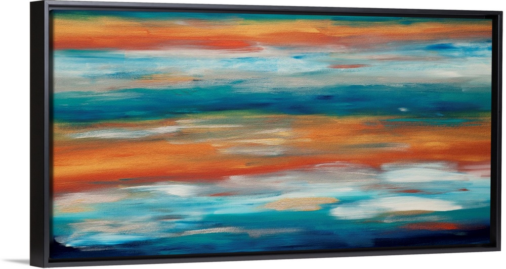 <p>Contemporary abstract painting in blue and orange, resembling the evening sky.</p>