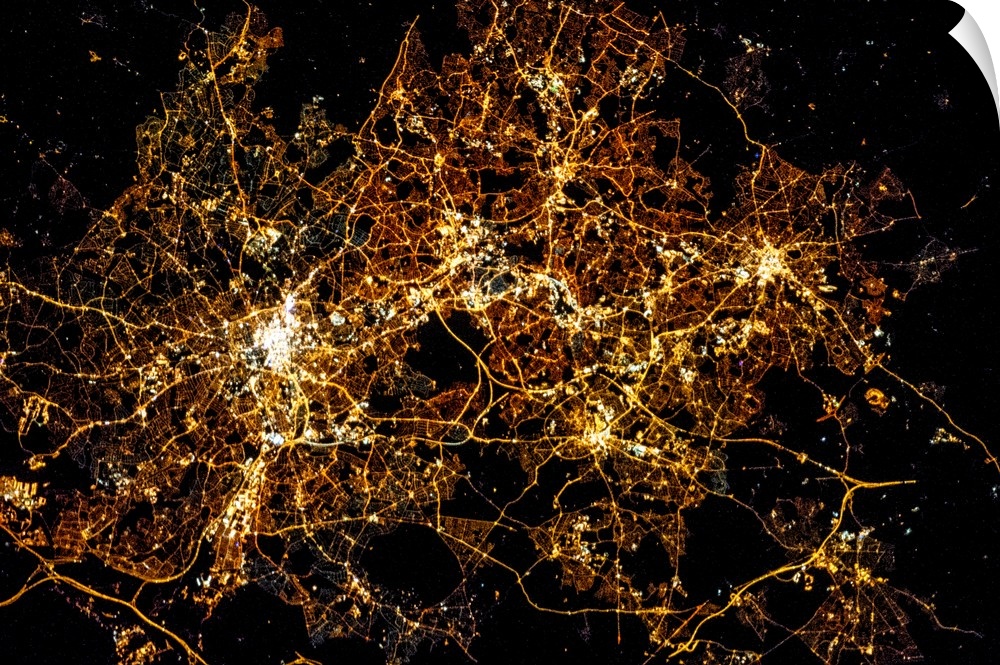 <p>Night time satellite image of a city in England, United Kingdom</p>