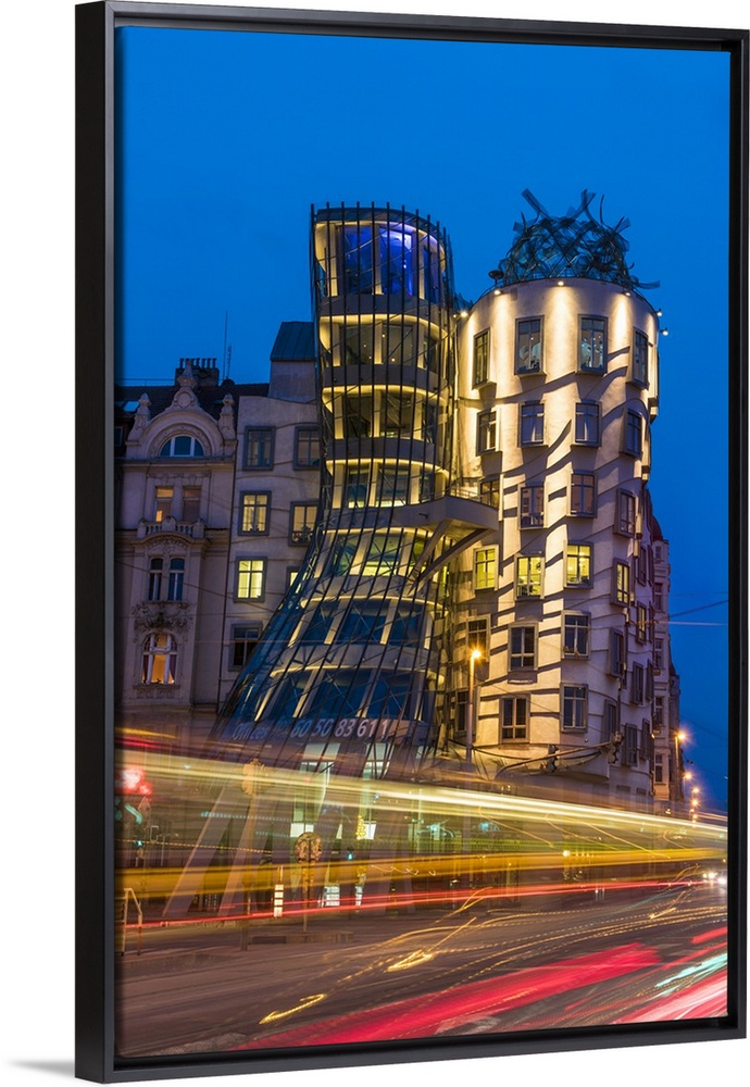<p>Night view of Dancing House or Fred and Ginger building, Prague, Bohemia, Czech Republic</p>