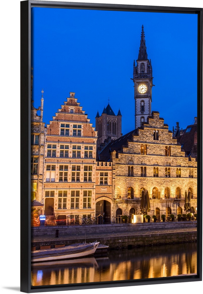 <p>Night view of Graslei quay with Post Plaza tower, Ghent, East Flanders, Belgium</p>
