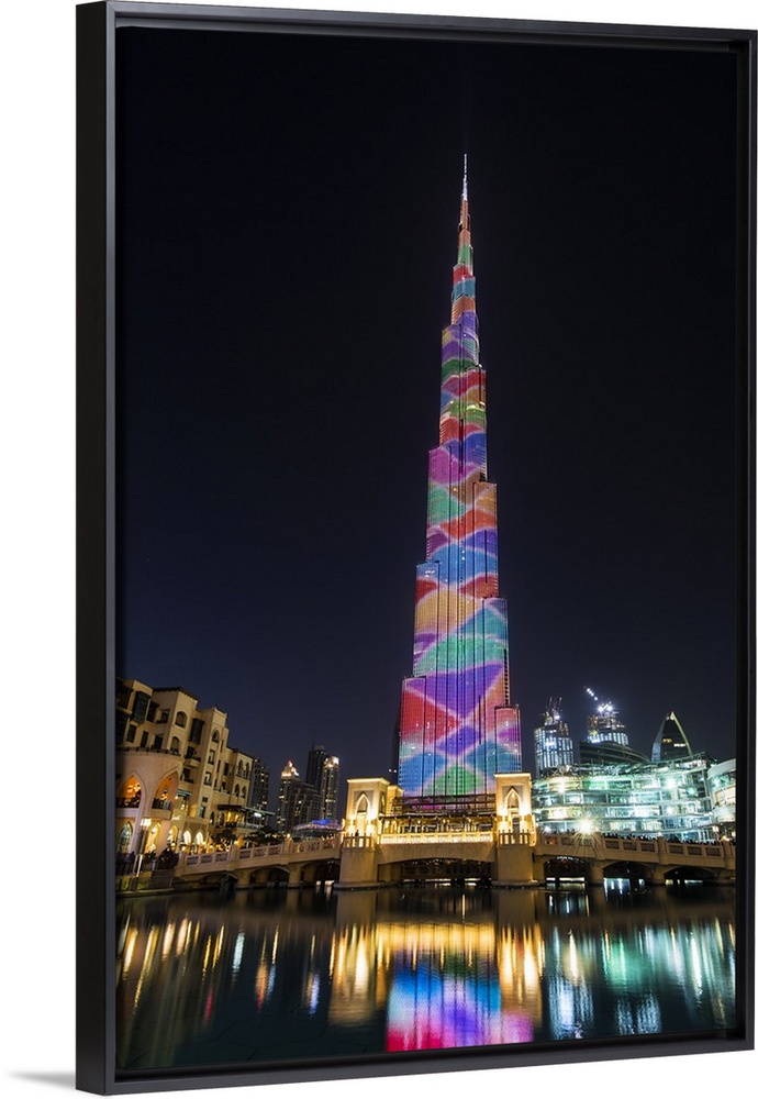 <p>Night view of LED light show on Burj Khalifa, Dubai, United Arab Emirates.</p>