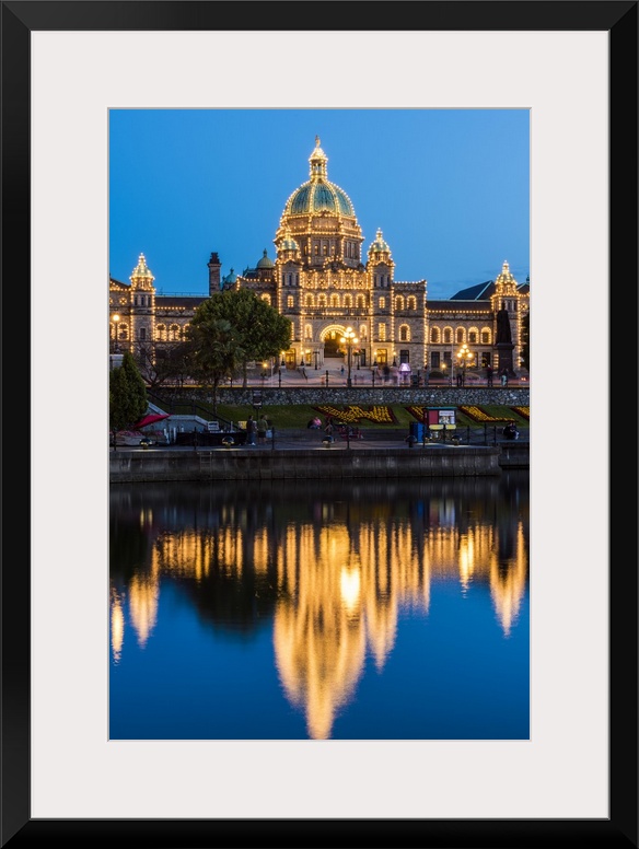 <p>Night view of the British Columbia Parliament Buildings, Victoria, British Columbia, Canada.</p>