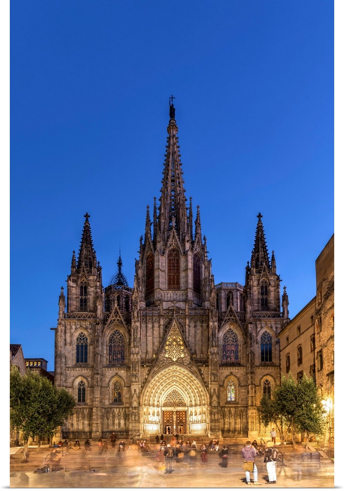 <p>Night View Of The Cathedral Of The Holy Cross And Saint Eulalia, Barcelona, Catalonia, Spain</p>