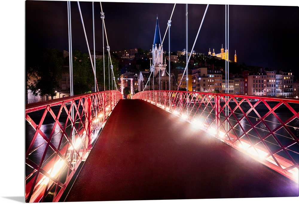 <p>Night View of Old Lyon from the St Georges Bridge, France</p>