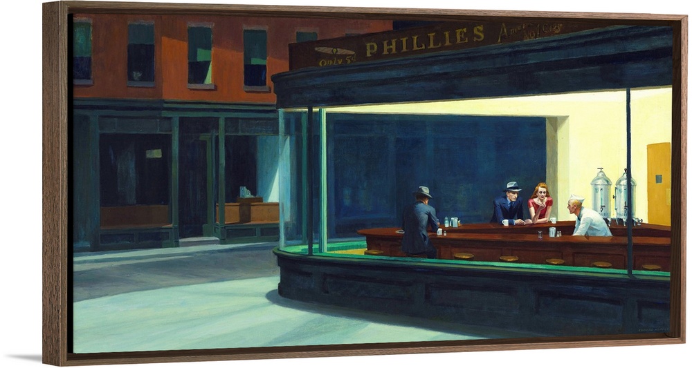 <p>Edward Hopper is best known for the iconic "Nighthawks," but there is much more to this American realist painter with a keen eye for isolation and narrative ambiguity. Edward Hopper wall art is an opportunity to furnish your walls with this beloved artist's strange, alluring, and off-kilter work.<p> <p class="title-3">Characteristics of Edward Hopper wall art</p> <p>Edward Hopper (1882-1967) was an American realist painter. He is best known for his detailed oil paintings depicting everyday urban life.<p> <p>The subject matter of Hopper's work was typically prosaic scenes of American life or landscapes. These lovingly rendered pictures of gas stations, streets, railroads, and restaurants remain captivating to this day. His subjects are well-delineated, while his use of lighting and composition gives his paintings a cinematic quality.<p> <p>Hopper uses everyday scenes but helps us see them in new ways. The feeling of isolation and dislocation runs through his works. The narrative complexity of his art keeps us guessing and gives each piece a strange and enduring picture of the solitude of early and mid-20th-century American life.<p> <p>Hopper's use of color, alongside unique perspectives, is perhaps the hallmark of his distinctive style. The colors are blocky and, at times, very saturated. When seen with his masterful mix of light and shadow, these choices provide a subtle communication of the interior life of his subject matter and a profound psychological resonance.<p> <p class="title-3">How do you choose the right piece of Edward Hopper art?</p> <p>Edward Hopper wall art fits a variety of places. While the style is particularly evocative of the first half of the 20th century, the work is flexible enough to deserve pride of place in more contemporary or minimalist places, too.<p> <p>The distinct atmosphere in Hopper's art is deeply nostalgic and represents the lonelier elements of industrialization. However, he also completed some incredible landscapes that will suit homeowners who want to inject their walls with more natural elements.<p> <p>Hopper's use of color plays a crucial role in the emotional impact of his work. Think about your interior decor style and hues and how these often dark and moody pieces can complement your existing palette. The right frame can provide a transition that helps to bring these worlds together in a pleasingly harmonious manner.<p> <p>Explore our incredible collection of Edward Hopper wall art to find the pieces that speak to you. With a mix of moody and slightly unsettling urban scenes and stunning landscapes, there is something for every art lover.<p>