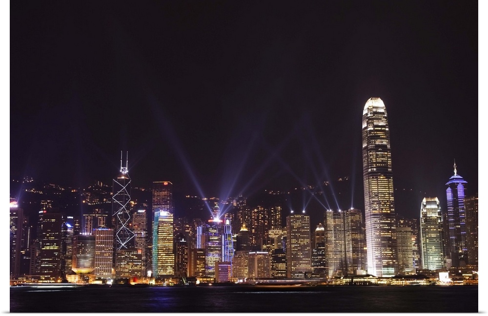 <p>Nightly sound and light show over Hong Kong Island skyline, Hong Kong, China, Asia</p>