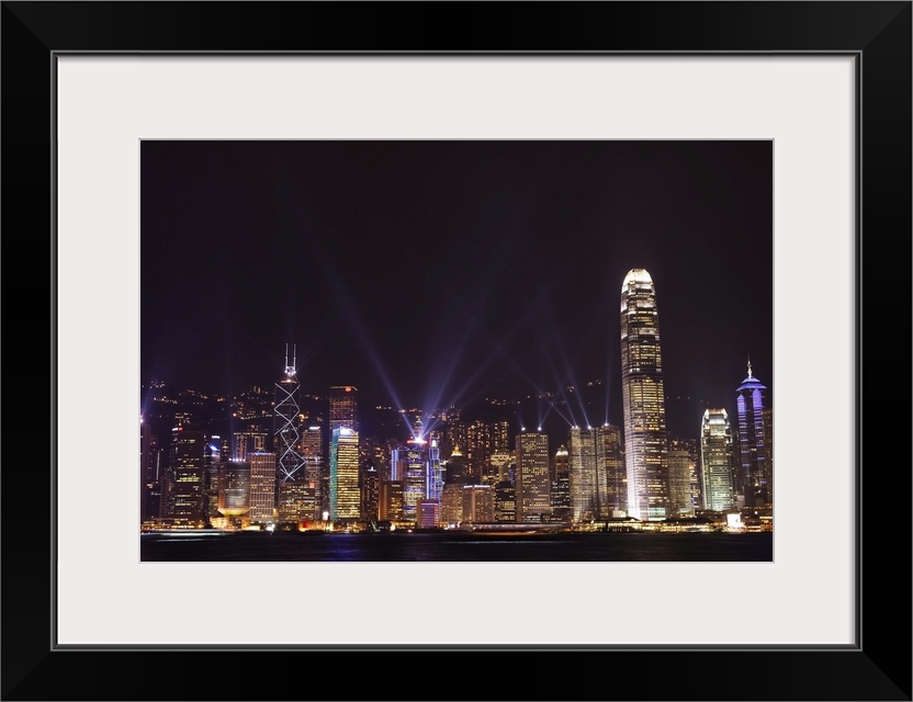 <p>Nightly sound and light show over Hong Kong Island skyline, Hong Kong, China, Asia</p>
